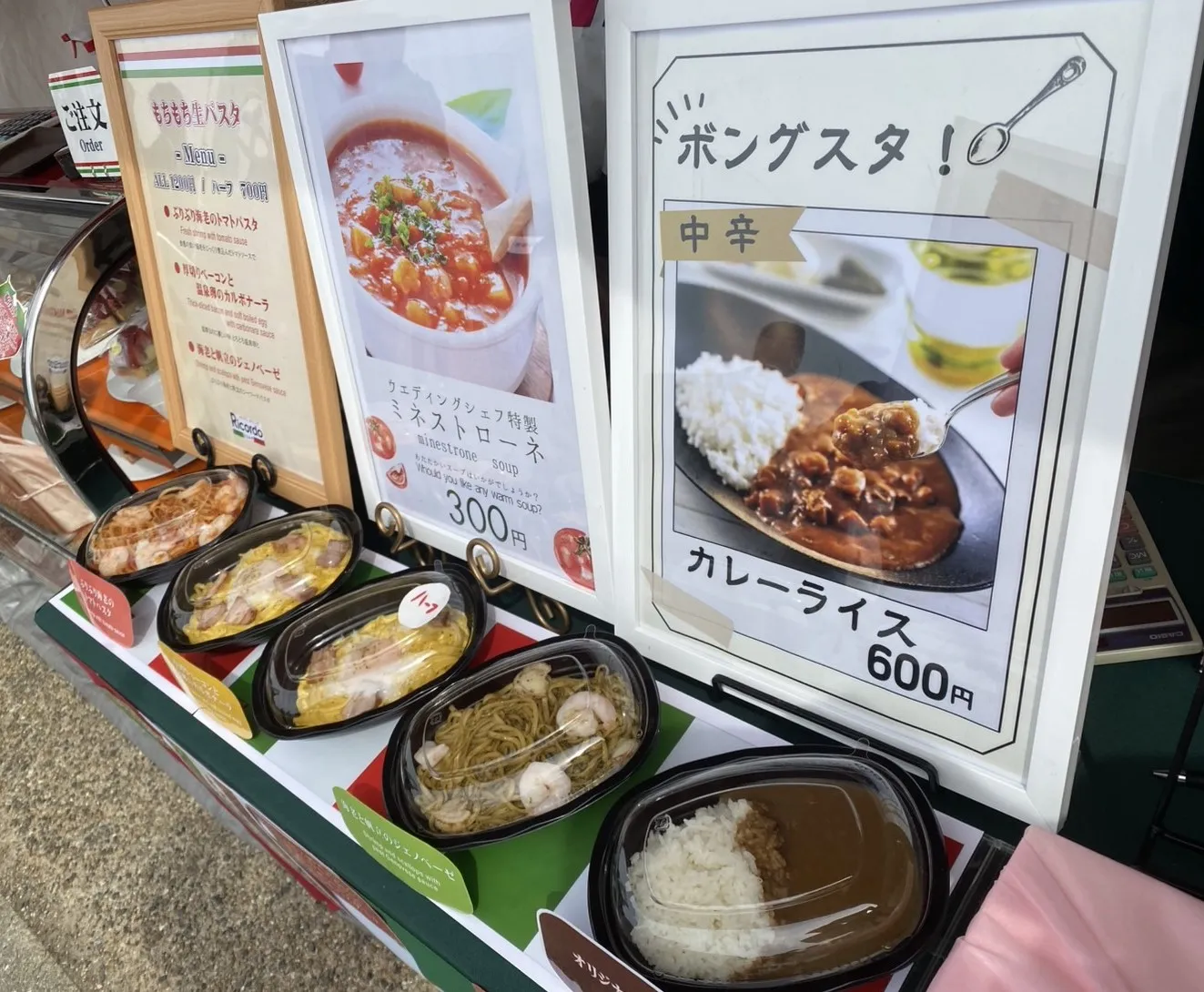 もちもち生パスタ、ミネストローネ、タルト・ケーキ、オリジナルカレー、お花見弁当