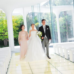 特長としては2.4m幅のバージンロードをご両親様と三人でご入場が叶います