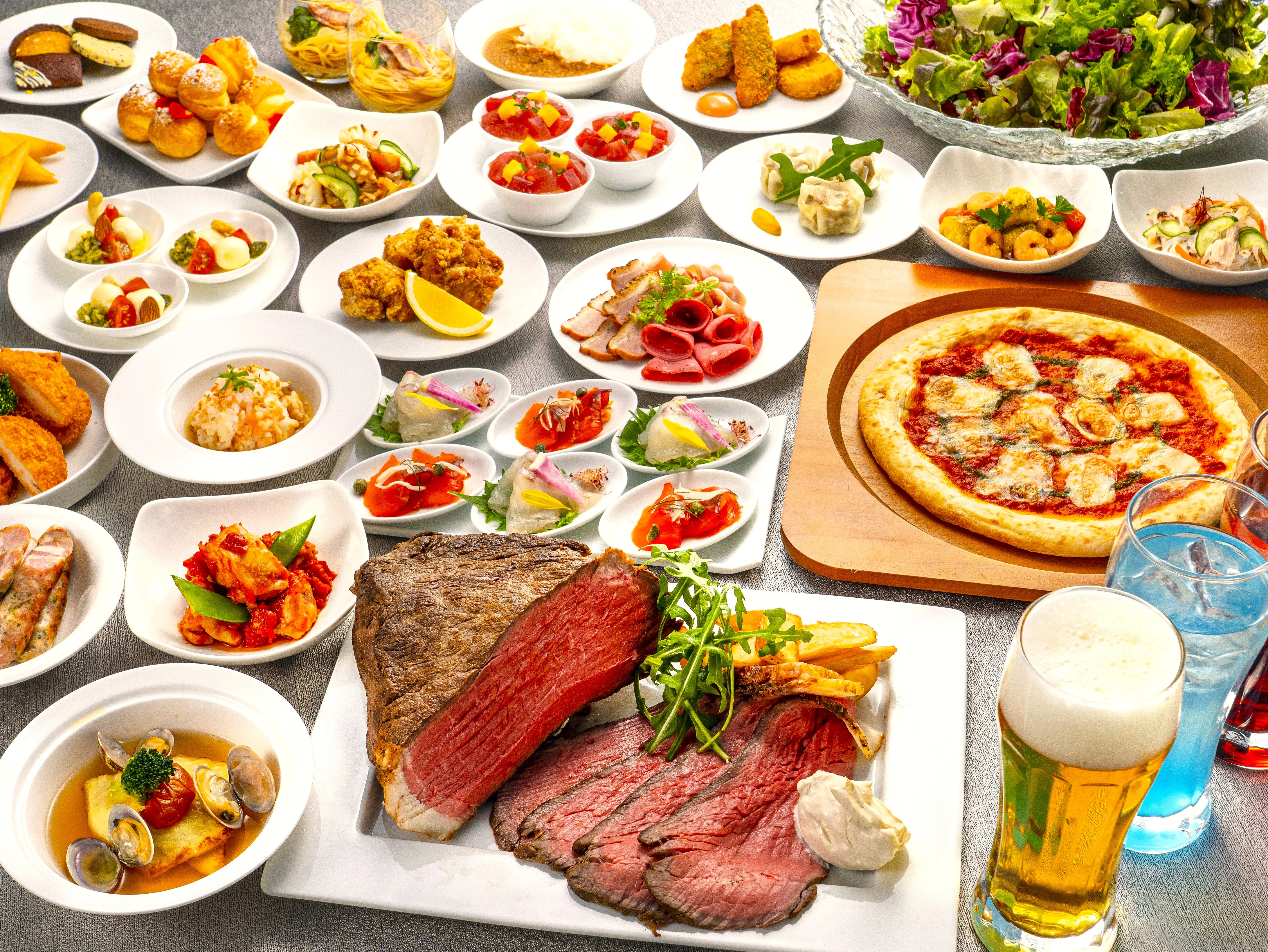 ・パスタ・ピッツァなどシェフが目の前で仕上げる温かい料理が楽しめる