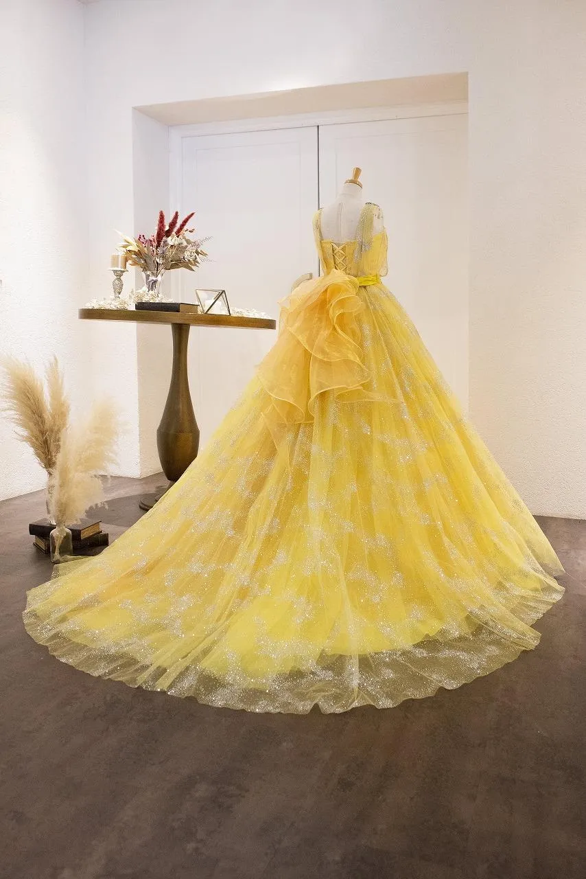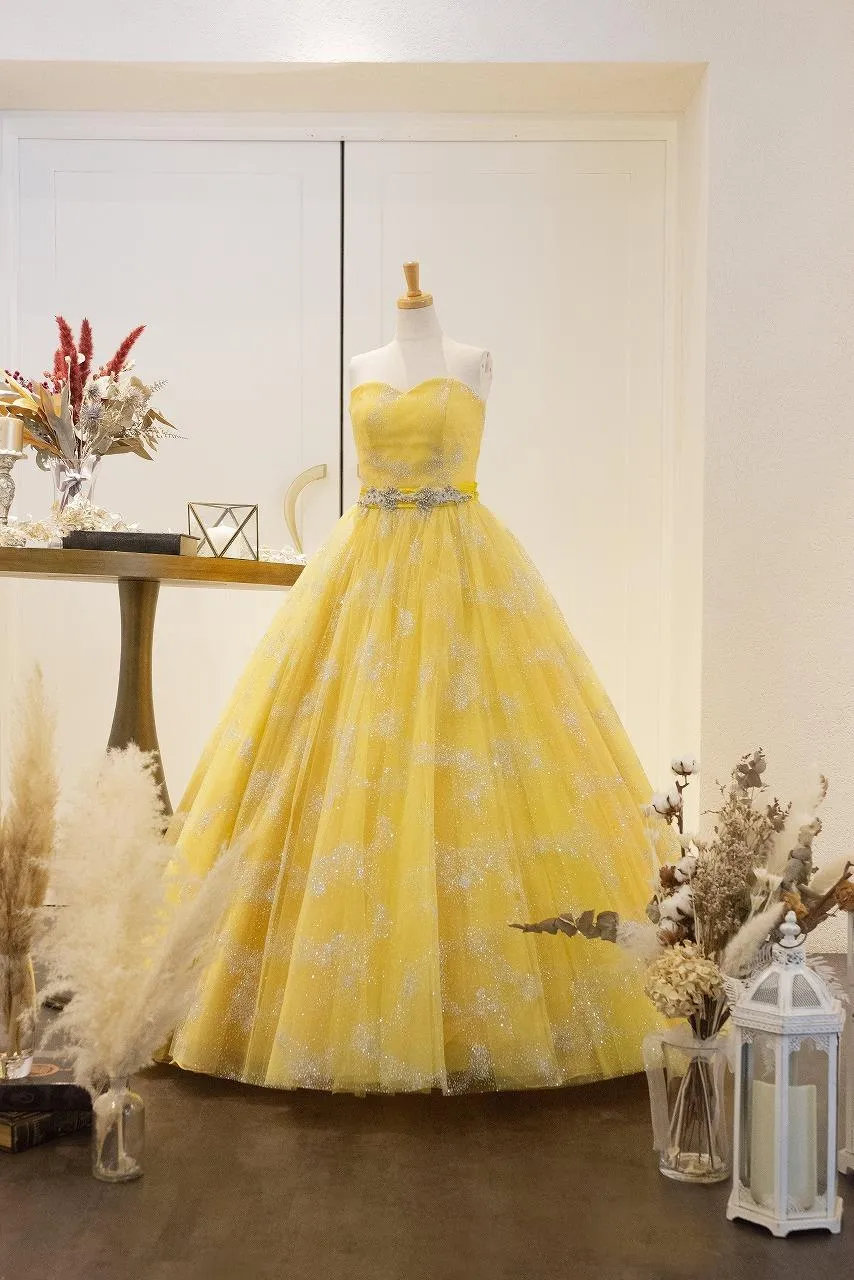 シルバーグリッターの光沢が美しいイエローのドレスです✨