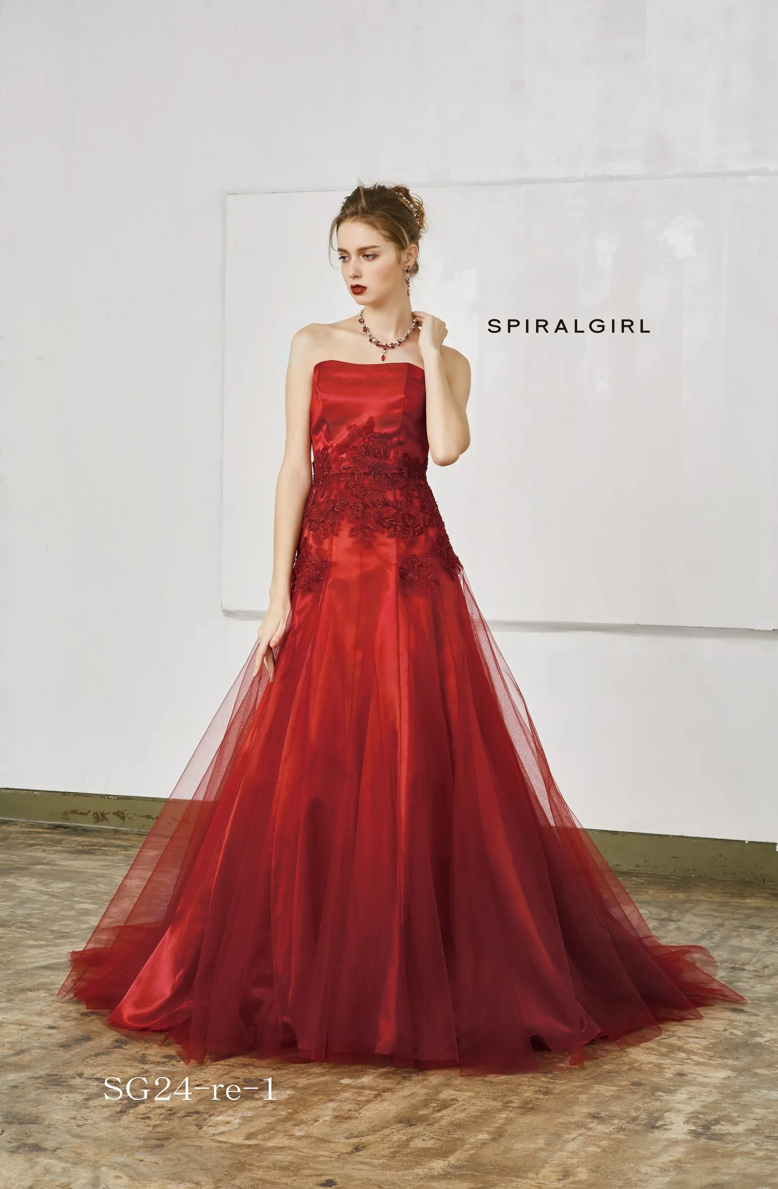 鮮やかな色目と光沢感が美しく、大人っぽいシルエットのドレス。