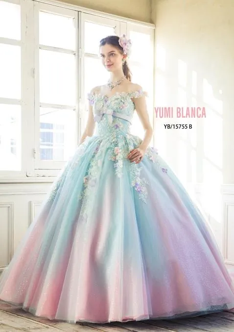 身頃からスカート裾へと大胆なグラデーションが動く、たっぷりとしたボリュームが魅力のボールガウンドレス👗