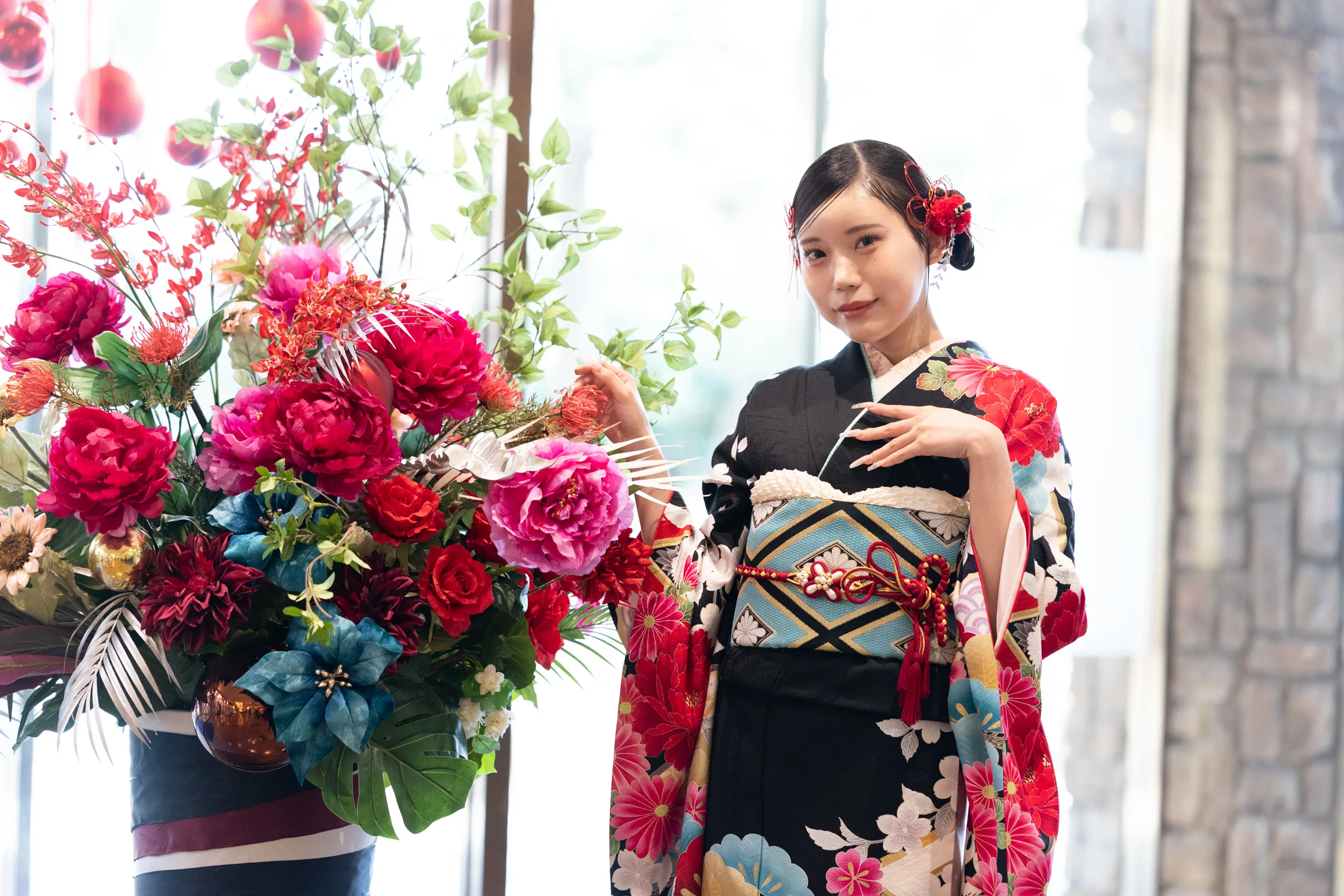ラヴィーナ姫路では振袖選びから前撮り、当日の着付けヘアセットをお手伝いさせて